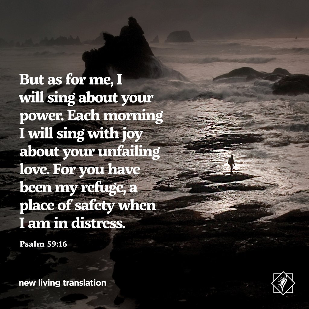 Twitter 上的 Nlt Bible Verse But As For Me I Will Sing About Your Power Each Morning I Will Sing With Joy About Your Unfailing Love For You Have Been My Refuge A